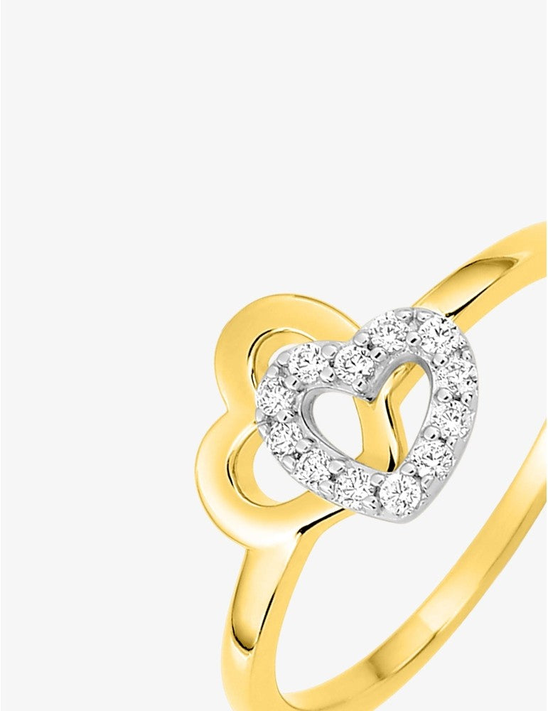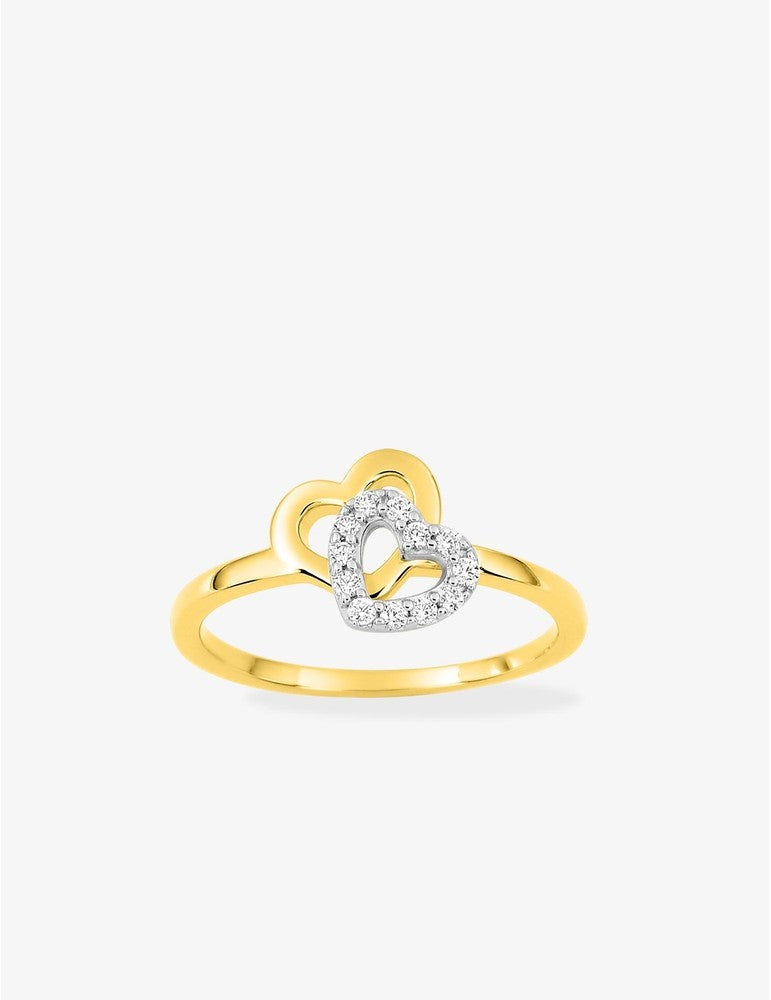 Bague en plaqué or double coeur 711-436