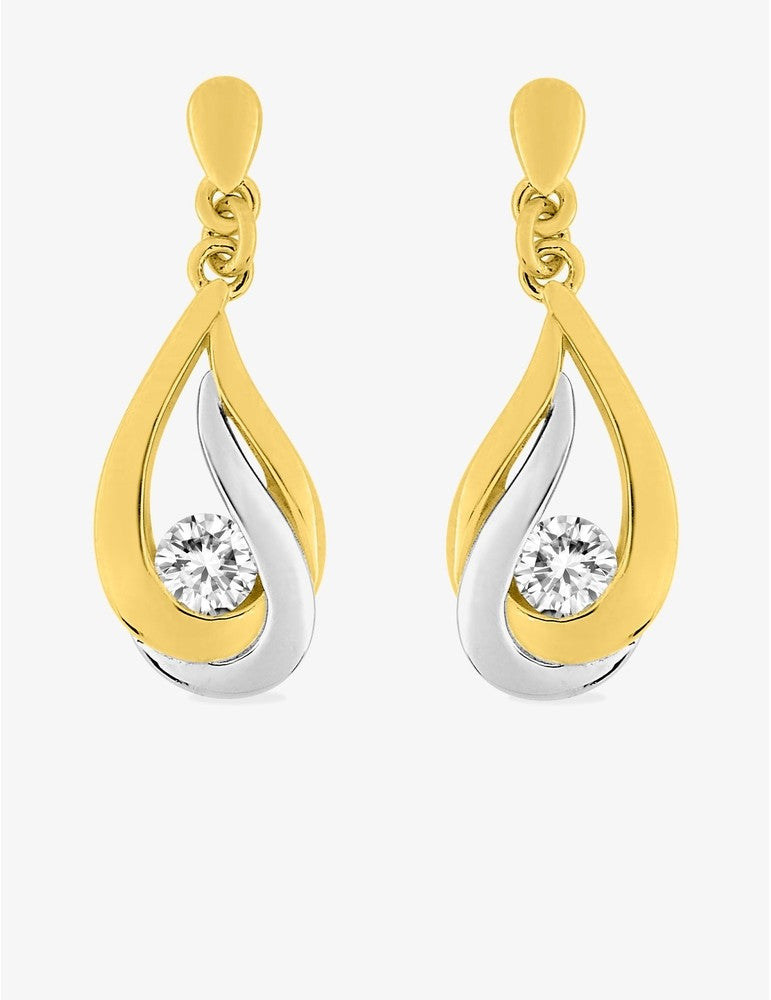 Un oxyde de zirconium de 3 mm de diamètre vient se lover dans la double goutte de ces boucles d'oreilles faites de plaqué or et de rhodium. Le pendentif mesure 14 mm de hauteur. Ces boucles d'oreilles apporteront élégance et éclat à vos oreilles.
