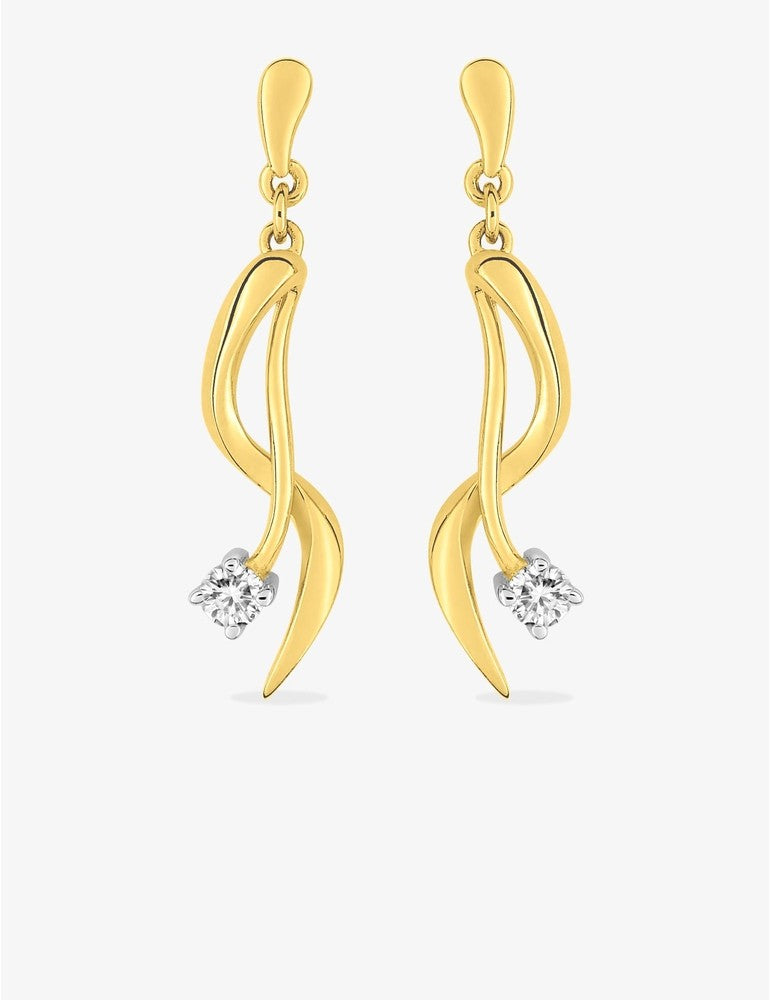 Ces boucles d'oreilles pendantes aux courbes entrelacées sont faites en plaqué or, rhodium et oxyde de zirconium. Le pendentif mesure 17 mm de hauteur. Ces boucles d'oreilles apporteront élégance et éclat à vos oreilles.