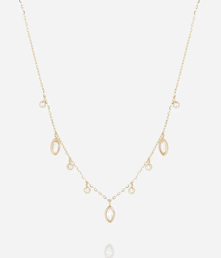 Collier en acier uni ou doré à l'or fin par ionisation serti de zirconiums ronds et ovales.