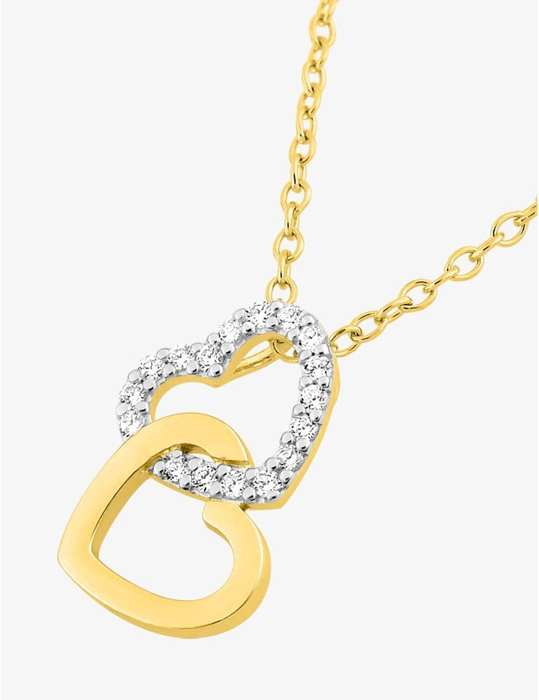 Collier double coeur en plaqué or et zirconiums 755z-362