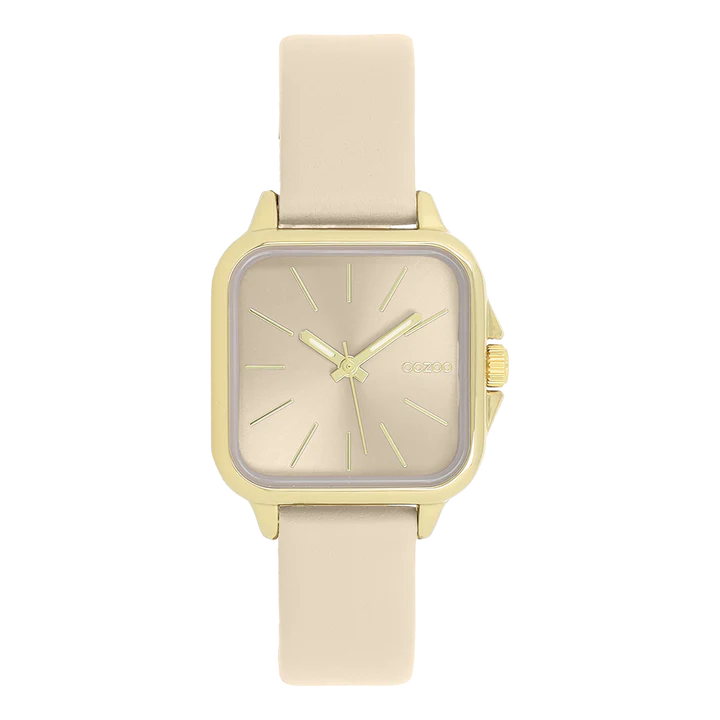 Distinguez-vous avec ce magnifique modèle femmes carré de la collection tendance OOZOO Timepieces. Cette nouvelle création (C11666) est enjolivée d’un bracelet en cuir sable et d’un boîtier tendance métal couleur or de 34x34 mm de diamètre. Faites sensation avec ce cadran sable sunray et un index couleur or rayures et des aiguilles assorti. Cette montre est un incontournable de votre garde-robe et possède un verre minéral.