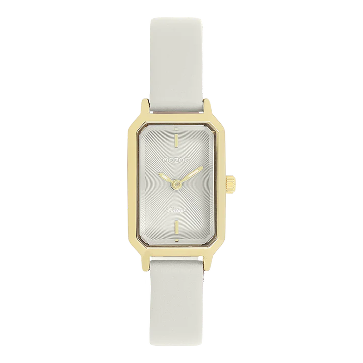 La grâce et le glamour sont les éléments centraux de cette série tendance. Ce modèle C20451 d'OOZOO Vintage rectangulaire est incontestablement l’accessoire incontournable pour cette saison! Cette montre femme est aussi bien sophistiquée que confortable à porter grâce à son boitier rectangulaire en métal couleur or de 22x19 mm et son cadran gris clair motif de cercle. Le bracelet en cuir gris clair fait de cette montre, un accessoire tendance à porter au quotidien! Cette montre ajoutera indéniablement de l'éclat à votre tenue. Le verre minéral repose dans un boîtier métallique de 9,5 mm.