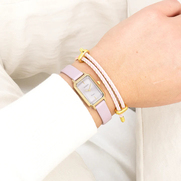 La grâce et le glamour sont les éléments centraux de cette série tendance. Ce modèle C20452 d'OOZOO Vintage rectangulaire est incontestablement l’accessoire incontournable pour cette saison! Cette montre femme est aussi bien sophistiquée que confortable à porter grâce à son boitier rectangulaire en métal couleur or de 22x19 mm et son cadran rose motif de cercle. Le bracelet en cuir rose fait de cette montre un accessoire tendance à porter au quotidien! Cette montre ajoutera indéniablement de l'éclat à votre tenue. Le verre minéral repose dans un boîtier métallique de 9,5 mm