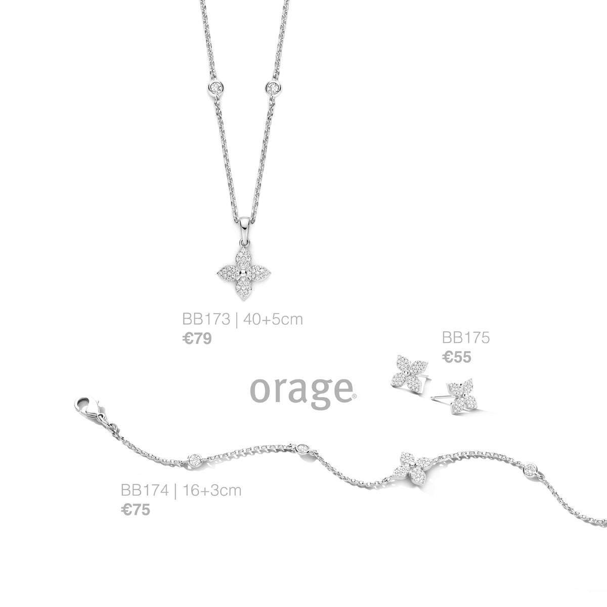 Boucles d'oreilles en argent rhodié avec zirconiums de la marque belge Orage