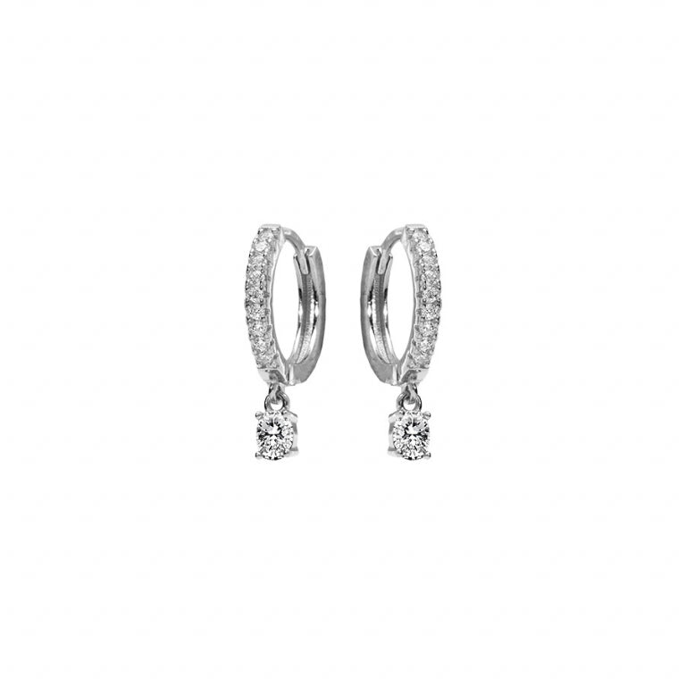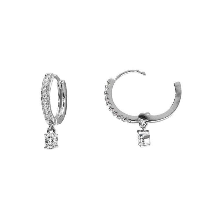 CRÉOLES ARGENT RHODIÉ OXYDES BLANCS SERTIS AVEC PAMPILLE OXYDE BLANC SERTI