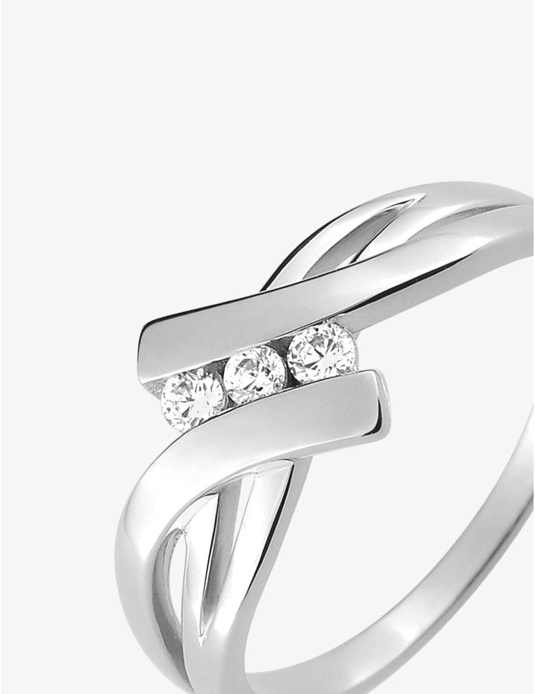 Bague en argent rhodié et zirconiums.
