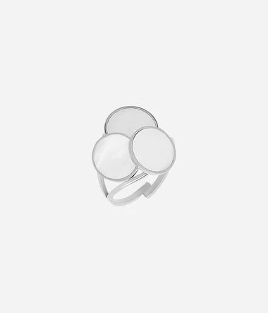 Bague en acier uni ou doré à l’or fin par ionisation sertie de 3 ronds en nacre.