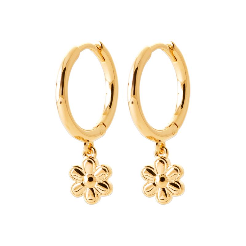 Boucles d'oreilles créoles en plaqué or avec motif fleur