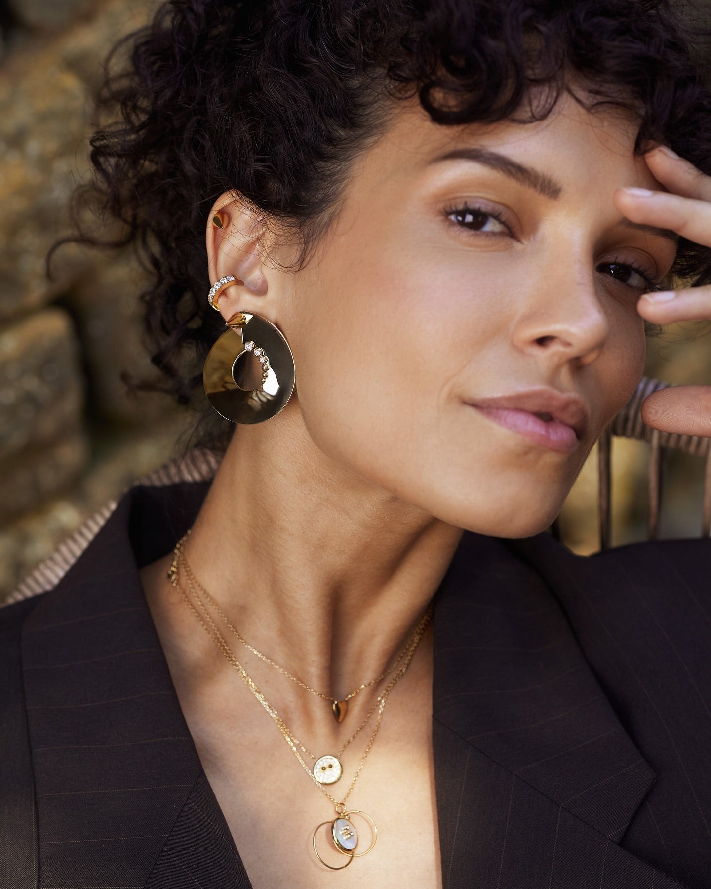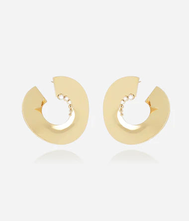 Boucles d'oreilles en acier doré à l'or fin par ionisation représentant un cercle désaxé lisse. Il est serti de petites billes en acier et de zirconium au centre. Idéal si vous souhaitez élever votre tenue sans effort.